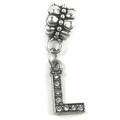 • "L" Letter Dangle Charm Beads with Crystals for Snake Chain Charm Bracelet