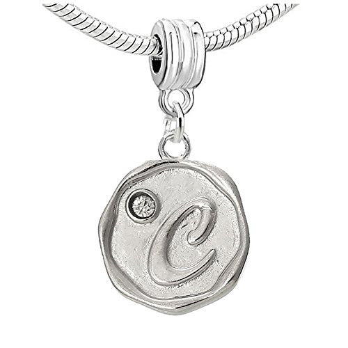 • Letter C Carved W/ Clear Color Crystal Charm Bead Compatible For Most European Snake Chain Bracelets