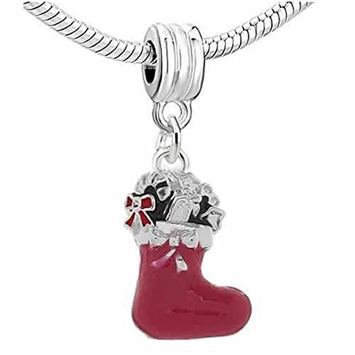 • Christmas Candy Cane Stocking Charm Dangle Bead for snake Chain charm bracelets