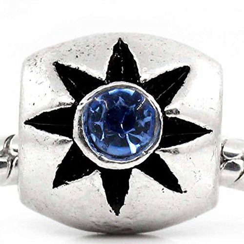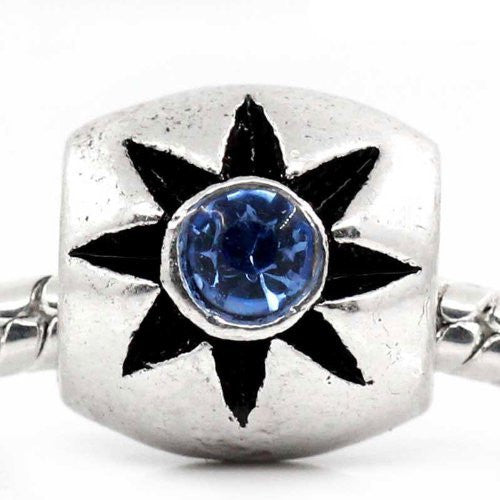Home › Charms › European Charm Beads Column Antique Silver Flower Carved W/Light Blue Rhinestone