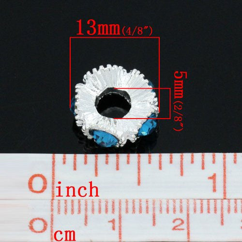 - Flower with Light Blue Rhinestones Charm Spacer For Snake Chain Charm Bracelets