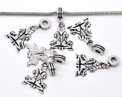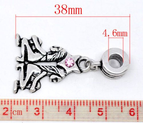Home › Charms › Gemini Zodiac Charm W/pink Crystal Dangle Bead for Snake Bracelets
