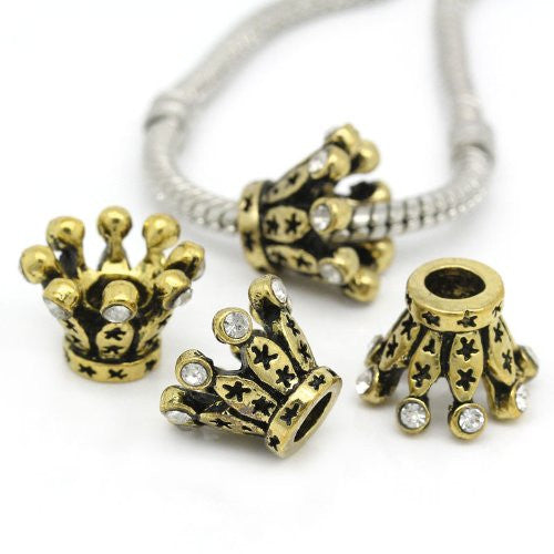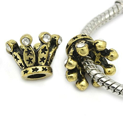 - Gold Tone Crown Charm w/ Clear Color Crystals European Spacer Bead for Snake Chain Charm Bracelet