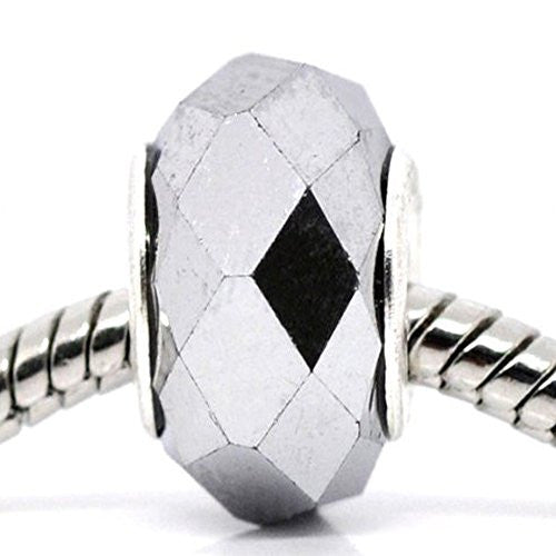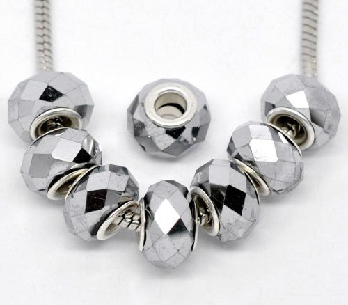 - Beautiful Silver-grey Tone Faceted Glass Bead Charm Bead Fits European Bracelet, Pandora Troll Chamilia Biagi Bracelet. A1261