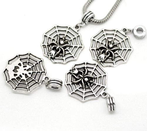 - Antique'd Silver Halloween Spider on Web Dangle Charm Bead Compatible with European Bracelet, Pandora Troll Chamilia Biagi Bracelet. A1465