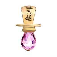 - Happy Birthday W/ Pink Color Crystal Baby Pacifier Charm Bead Compatible For Most European Snake Chain Bracelets