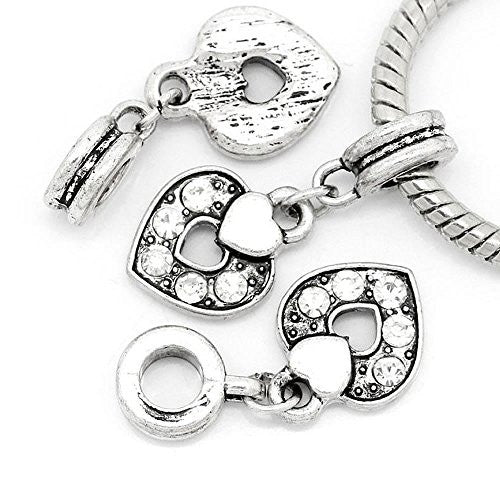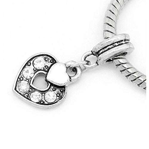 - "Heart Charm W/Clear Color Crystals" Bead Compatible For Most European Snake Chain Bracelets