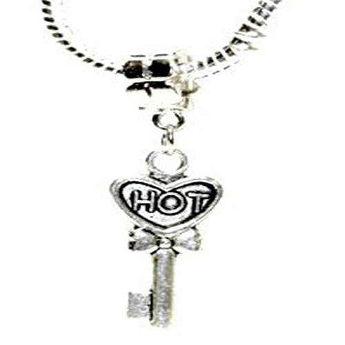 - One (1) Silver Tone Heart "Key to My Heart" Dangle Charm Compatible with Pandora Troll Chamilia Biagi Bracelet
