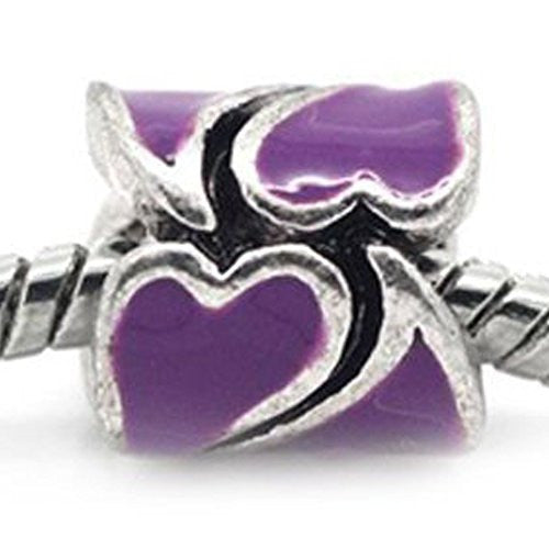 Heart Pattern Bead European Bead Compatible for Most European Snake Chain Braceletss (Purple)