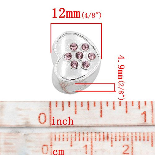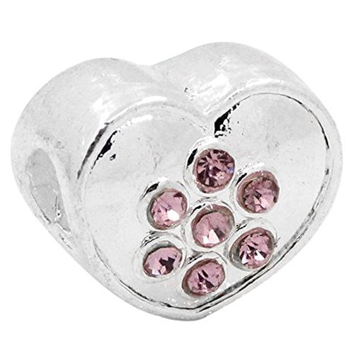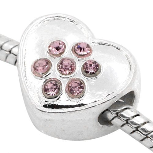- "Heart W/pink Rhinestones " Charm Bead Pandora Troll Chamilia Kay Zable Compatible