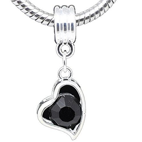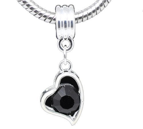 Home › Charms › Heart with Black Rhinestone Dangle charm for European Snake chain charm bracelet