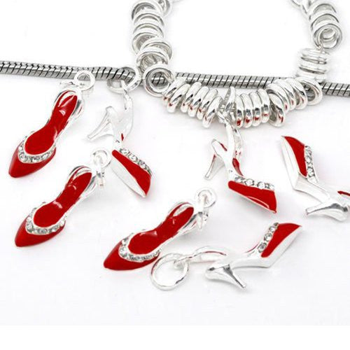 - Fancy W/Red Crystals High Heel Charm Bead Compatible For Most European Snake Chain Bracelets