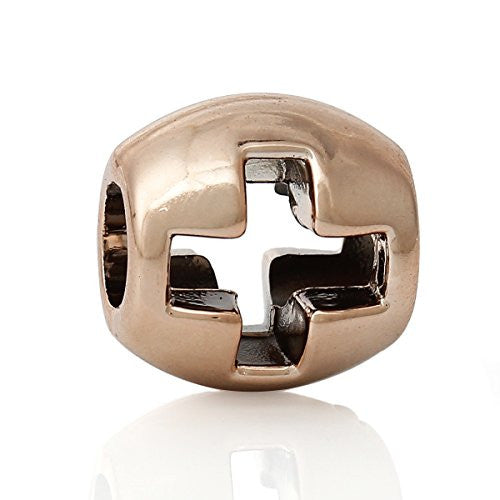 - "Gold Color Hollow Cross" Charm Bead Spacer Compatible For Most European Snake Chain Bracelets