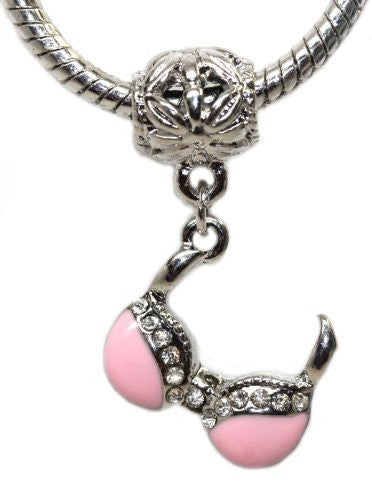 - Pandora Style Charm Silver Plated with Pink Detailing Ladies Bra / Bikini Dangle Charm , Compatible with Pandora Troll Chamilia Biagi Bracelet A29
