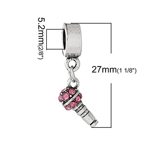 Home › Charms › Microphone with Pink Crystals for Snake Chain Charm Bracelet