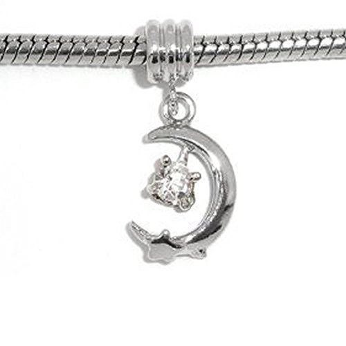 - One Silver Tone Rhinestone Moon/Star Dangle Bead Charm Fits Pandora Troll Chamilia Biagi Bracelet