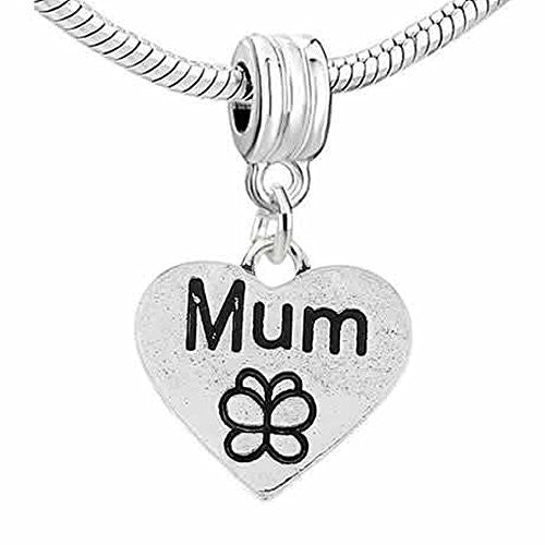 • Mum Charm with Butterfly Carved Dangle Bead for snake Chain charm bracelets