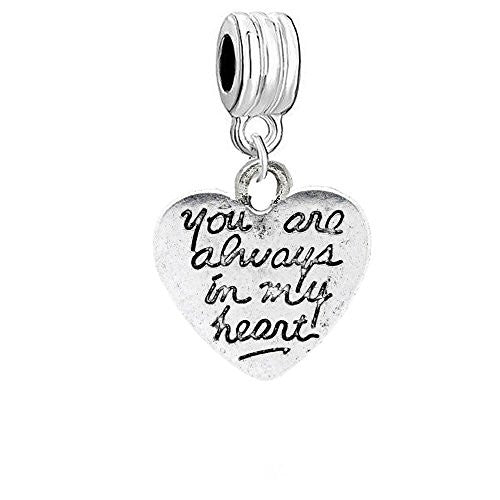 - One (1) Silver Tone Heart "You Are Always in My Heart" Charm for Necklace. A1183