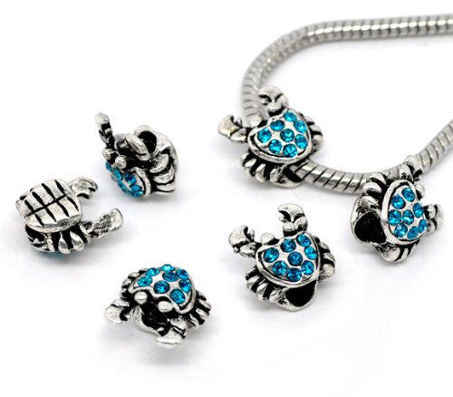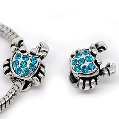 - One Silver Tone Crab with Turquoise Rhinestone Charm Bead Compatible with European Bracelet, Pandora Troll Chamilia Biagi Bracelet. B1298