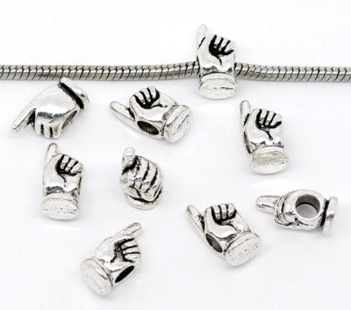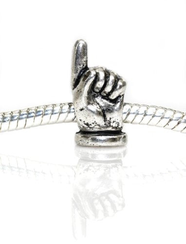- " Pointer Finger " Antique'd Silver Bead Charm Spacer Pandora Troll Chamilia Biagi Bead Compatible. A1188