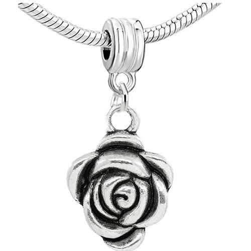 - Rose Flower Charm Dangle Bead for snake Chain charm bracelets