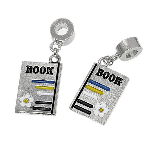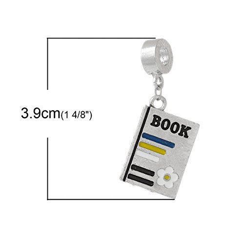 School Book with Flower Dangle Charm European Bead Compatible for Most European Snake Chain Bracelet