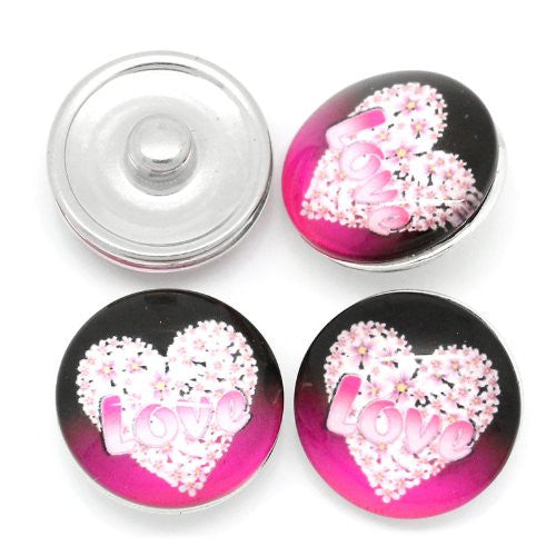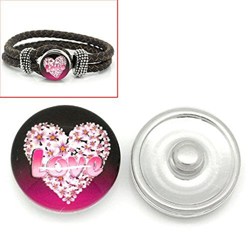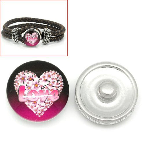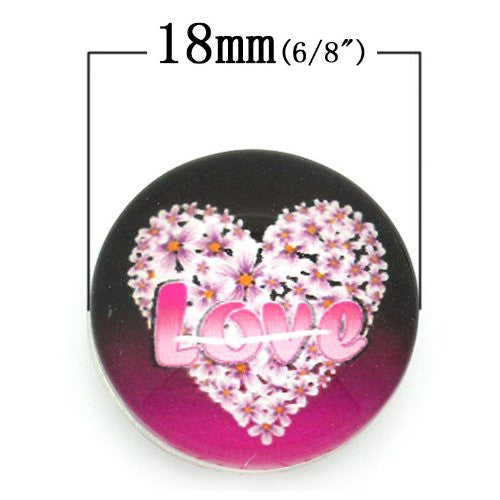 • Love Flower Heart Design Glass Chunk Charm Button Fits Chunk Bracelet 18mm for Noosa Style Chunk Leather Bracelets
