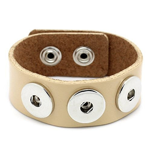Home › Chunk Charms › Real Leather Copper Buckle Bracelets Khaki Chunk Buttons Fit Interchangeable Snap Fasteners 24cmx2.4cm