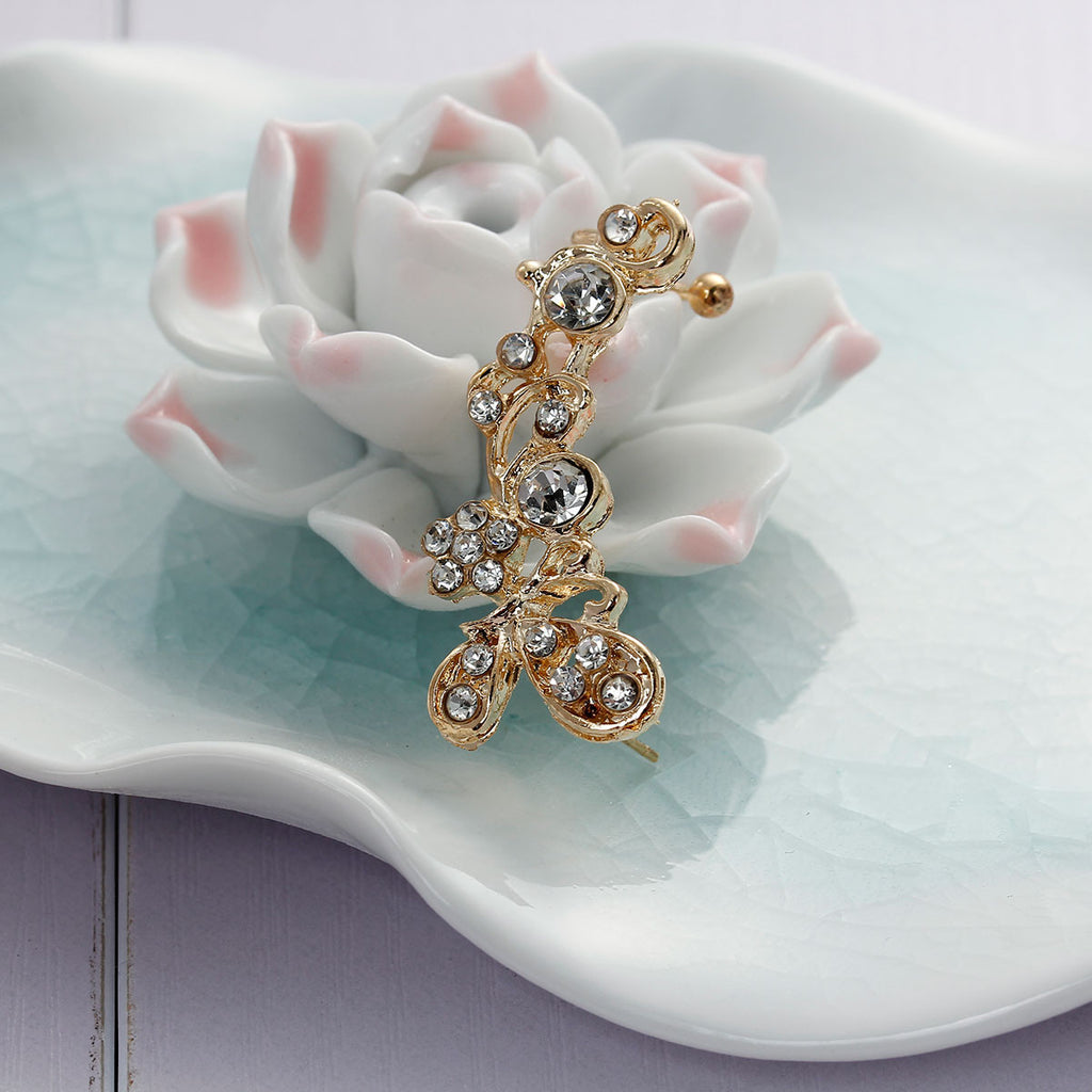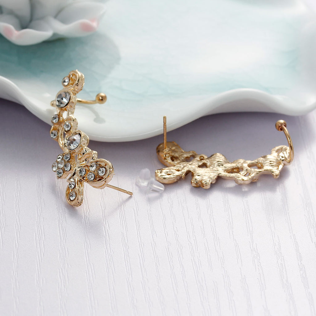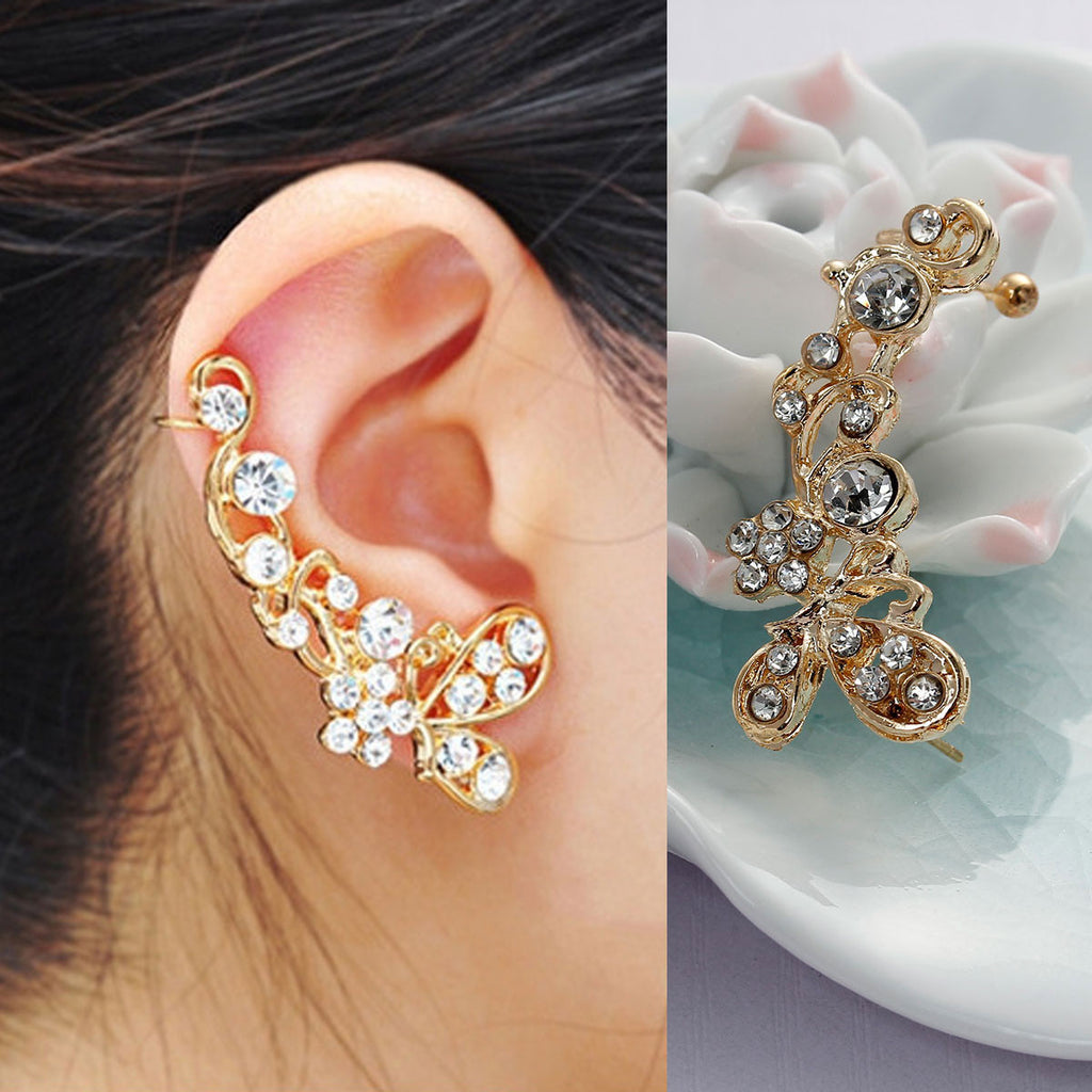• Ear Cuff Wrap Earrings Clip On Stud For Right Ear Butterfly Gold Plated With Clear Rhinestone W/Stoppers 34mm(1 3/8") x 16mm( 5/8")
