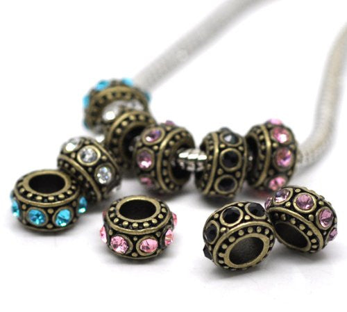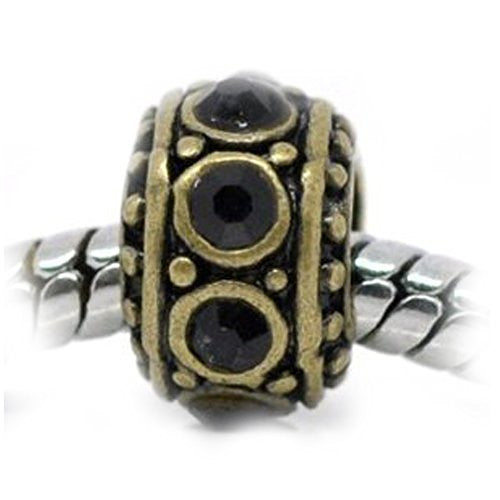Bronze with Black Rhinestone Spacer Charm European Bead Compatible for Most European Snake Chain Bracelet