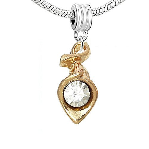 • One Sided Calla Lily Flower with Clear Color Crystal Charm Bead for Snake Chain Charm Bracelet. This charm bead spacer is a great add on to your Pandora bracelet. Fits Pandora, Biagi, Chamilia, Zable, charmed memories and Troll Chains. Great charm for birthdays, Christmas and any holiday!!!