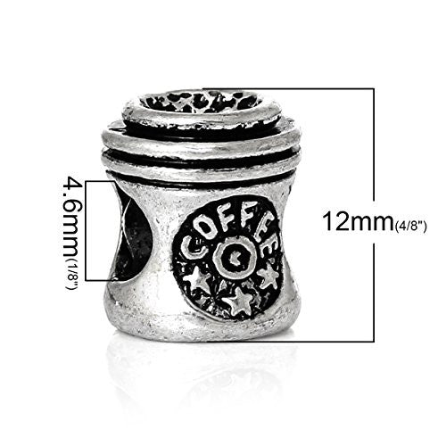 - Coffee Cup With Stars Charm Bead Spacer Compatible for Most European Snake Chain Bracelets