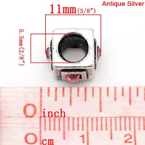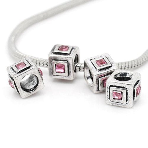 Home › European Charms › Cube Charm with pink Rhinestone Crystals European Bead Compatible for Most European Snake Chain Bracelet