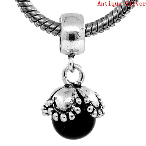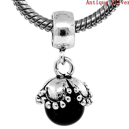 - Dangle Acrylic Black Pearl Flower Bead for Snake Chain Charm Bracelet