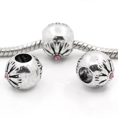 Home › European Charms › Dark Pink Flower Pattern Carved with Rhinestones European Bead Compatible for Most European Snake Chain Bracelet
