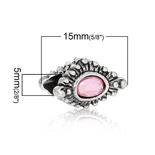 Home › European Charms › European Style Charm Beads Rhombus Antique Silver Pink Rhinestone