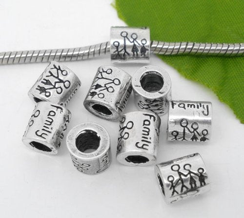 - Family Mom,Dad and Kids Charm Beads Silver Color Compatible for Most European Snake Chain Bracelets