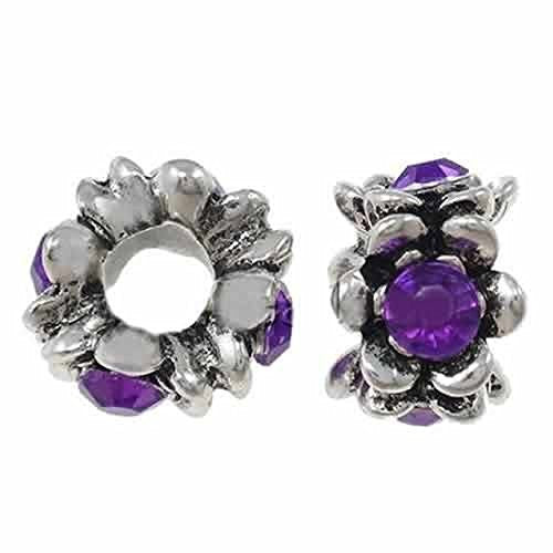 • Purple Flower Crystal February Birthstone Charm for Pandora Bead Troll Chamilia Kay Zable Compatible