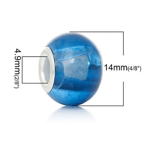 Home › European Charms › Five (5) Blue Glass European Murano Lampwork Beads Compatible with European Snake Chain Bracelet