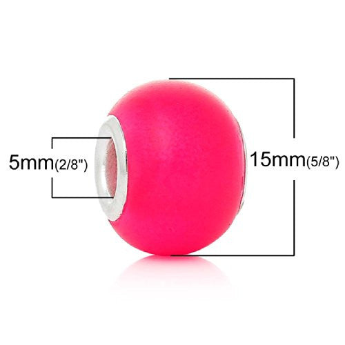 Five (5)Hot Pink Lampwork Murano Glass European Beads Compatible with European Snake Chain Bracelet