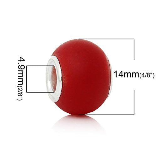 Five (5)Red Lampwork Murano Glass European Beads Compatible with European Snake Chain Bracelet
