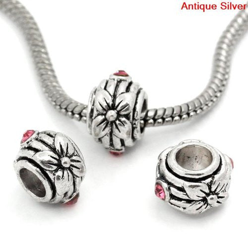Flower With Pink Rhinestone Charm Spacer European Bead Compatible for Most European Snake Chain Bracelet