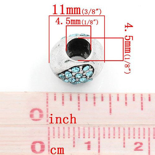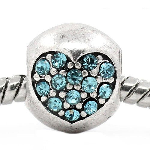 - Heart Carved On Charm With Rhinestones Bead Spacer For Snake Chain Bracelets