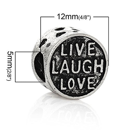 • "Live Laugh Love"Carved Round Charm Bead Spacer Compatible for Most European Snake Chain Bracelets