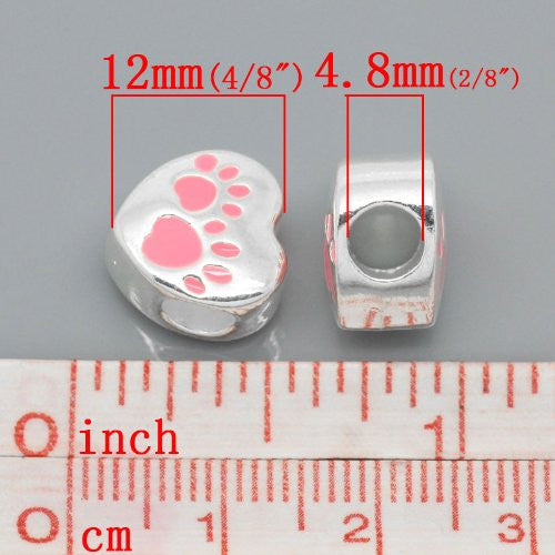 - Love Heart Charm with Paw Print Bead For Snake Chain Charm Bracelets (Choose Your Color From Menu)