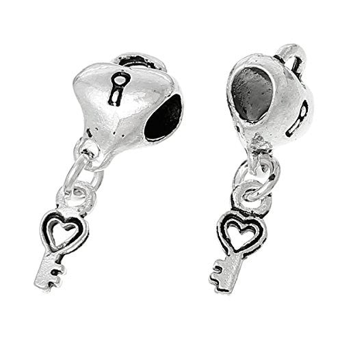 - Lovers Lock and Key Charm Spacer Bead For Snake Chain Bracelets