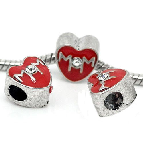 - Mother Day Mom Red Heart Bead for Snake Chain Charm Bracelet. Fits All major Brand Bracelets, such as Pandora, Troll, Chamilia, Carlo Biagi, Zable, and other add-a-bead bracelets.