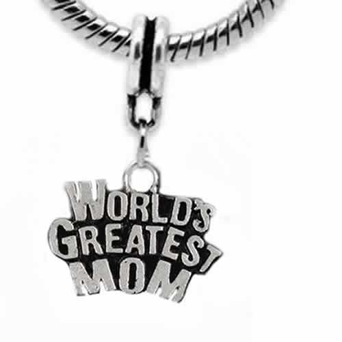 - Mothers Day Gift Worlds Greatest Mom Dangle Bead for Snake Charm Bracelet