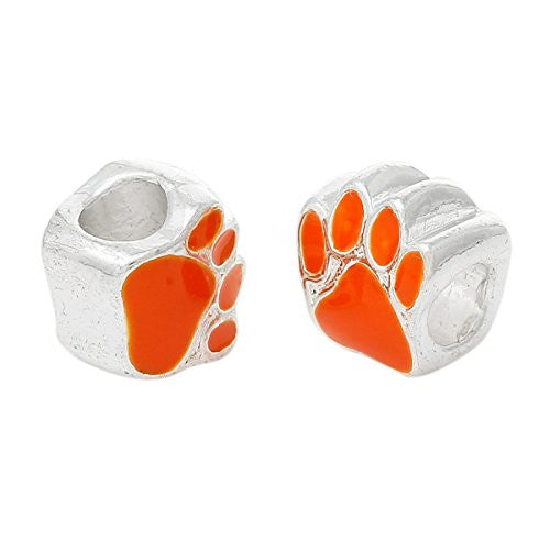 • Orange "Bear Paw" Charm Bead Compatible For Most European Snake Chain Bracelets