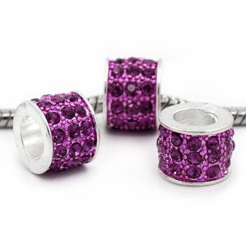 - "Pink Cylinder Silver Charm Plated w/ Rhinestones" Charm Bead Antique Silver Spacer Pandora Troll Chamilia Biagi Bracelet Compatible